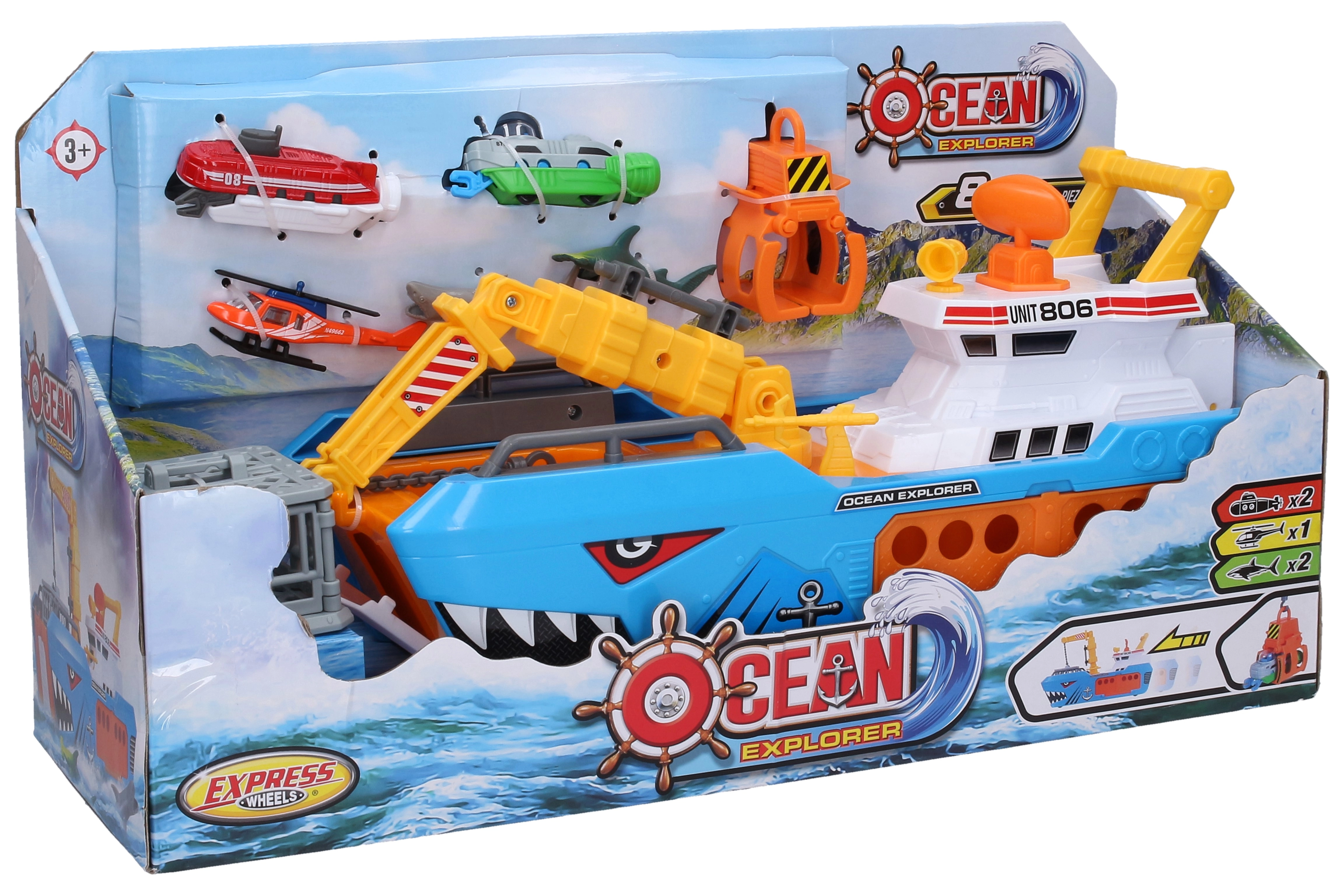 De robuuste uitvoering is ontworpen voor frequent spelen, zowel binnen als buiten. De set is ideaal als cadeau voor kleine avonturiers die van de zee, boten en dieren houden.
