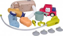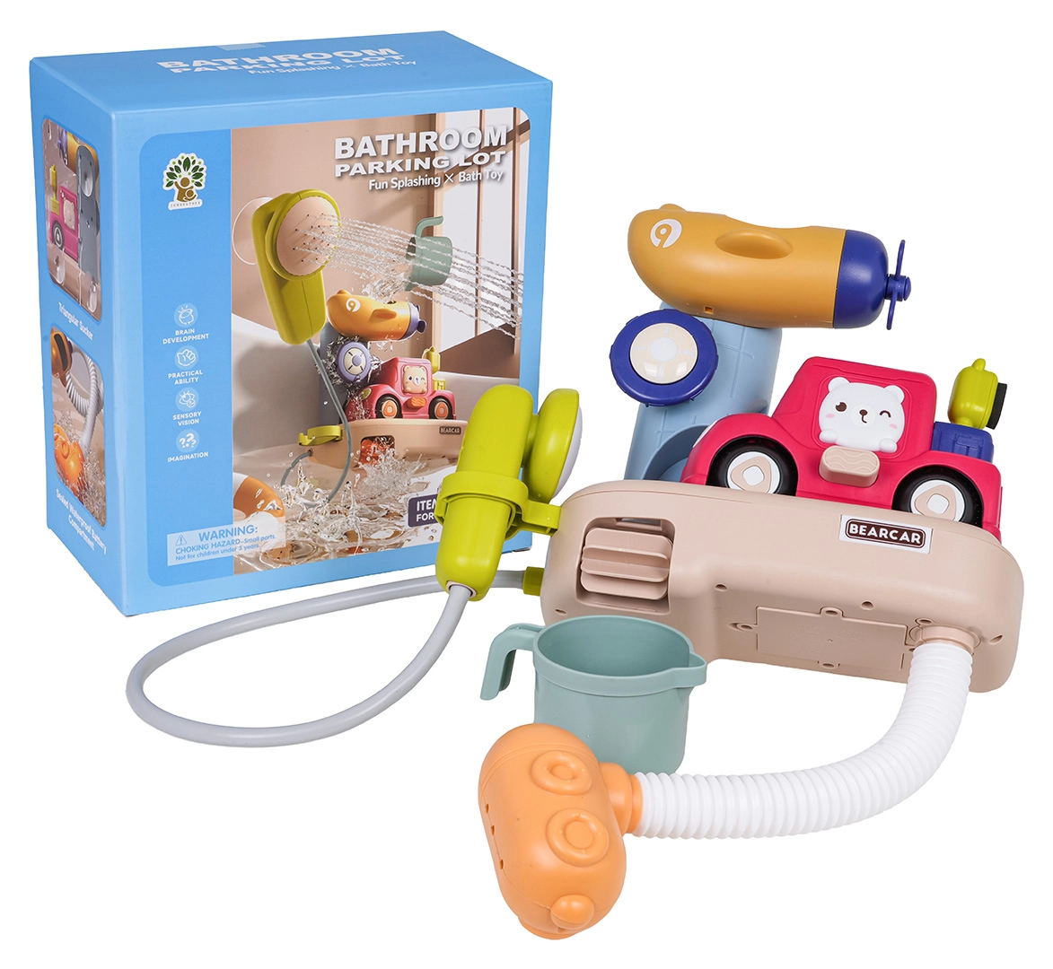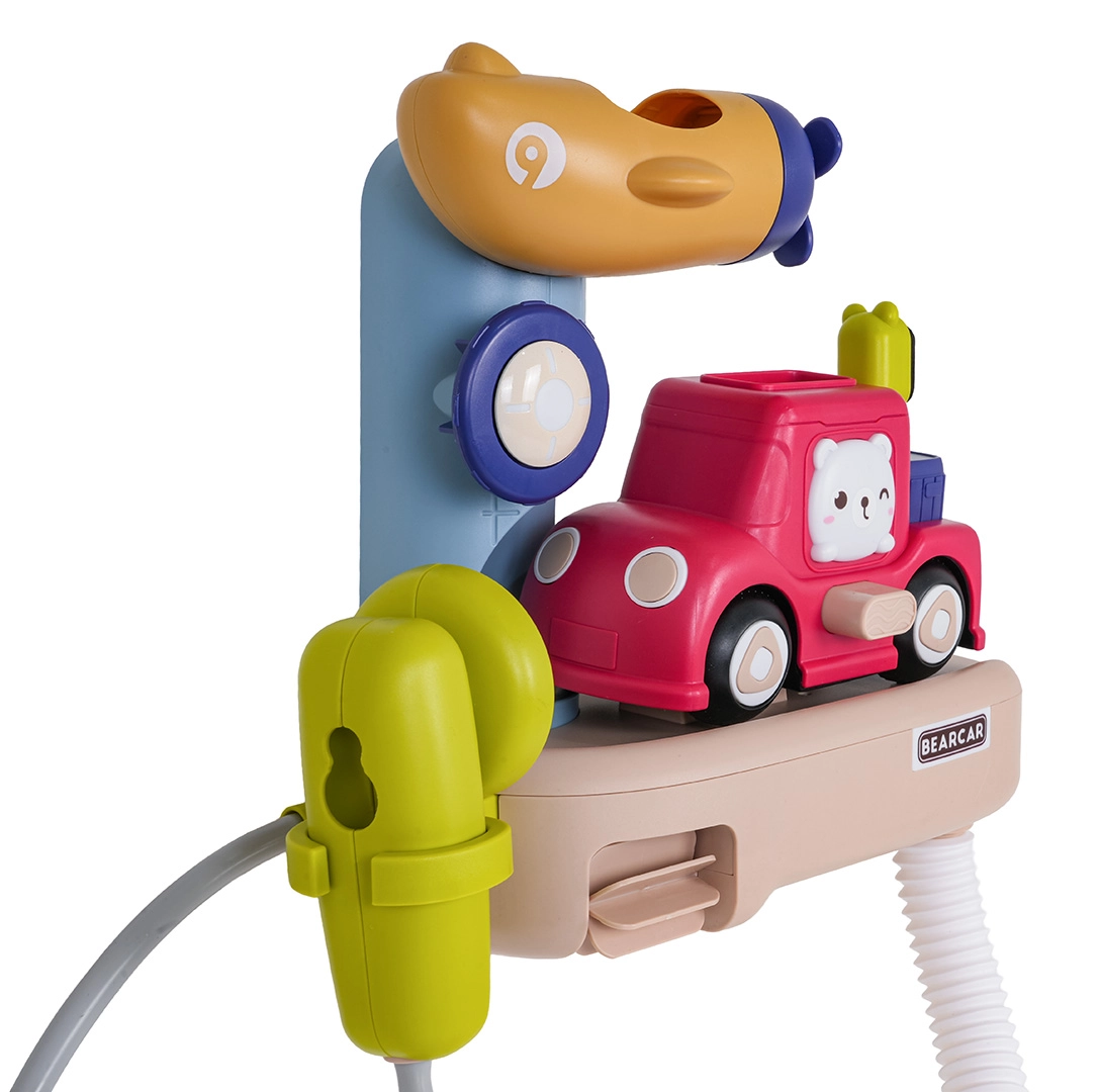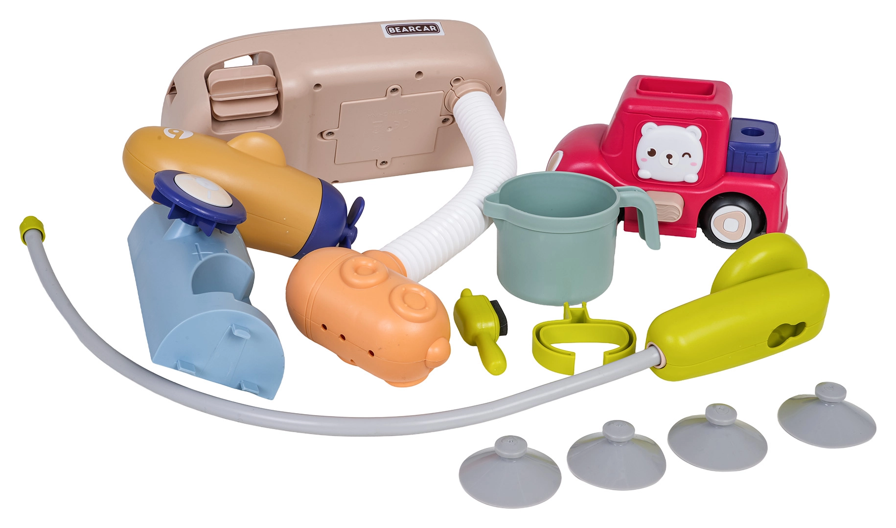 De set bevat een schattig autootje, een bekertje en een stabiele basis die uitnodigen tot gieten, sproeien en ontdekken. Hoogwaardige, veilige materialen en gladde randen garanderen veilig spelen. Dankzij de felle kleuren en bewegende onderdelen gaan kinderen van badderen houden en ouders waarderen eenvoudig onderhoud en snelle installatie.