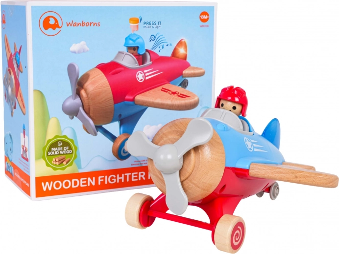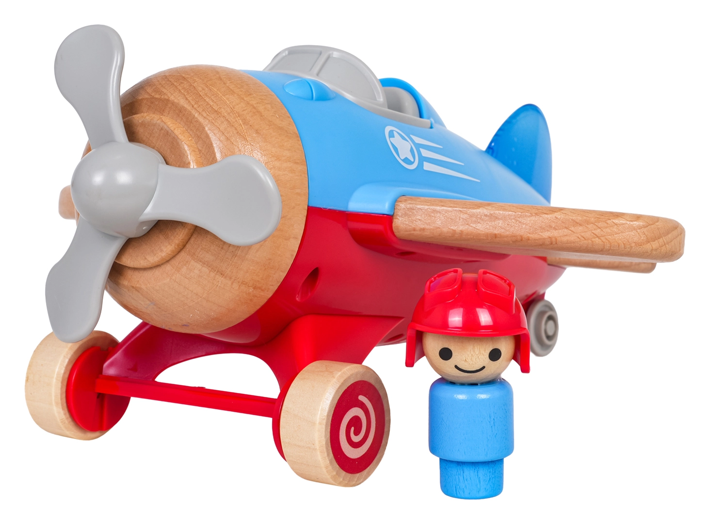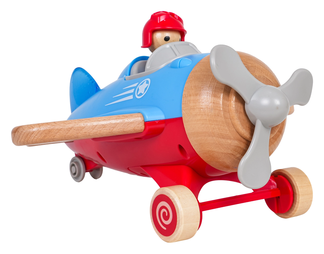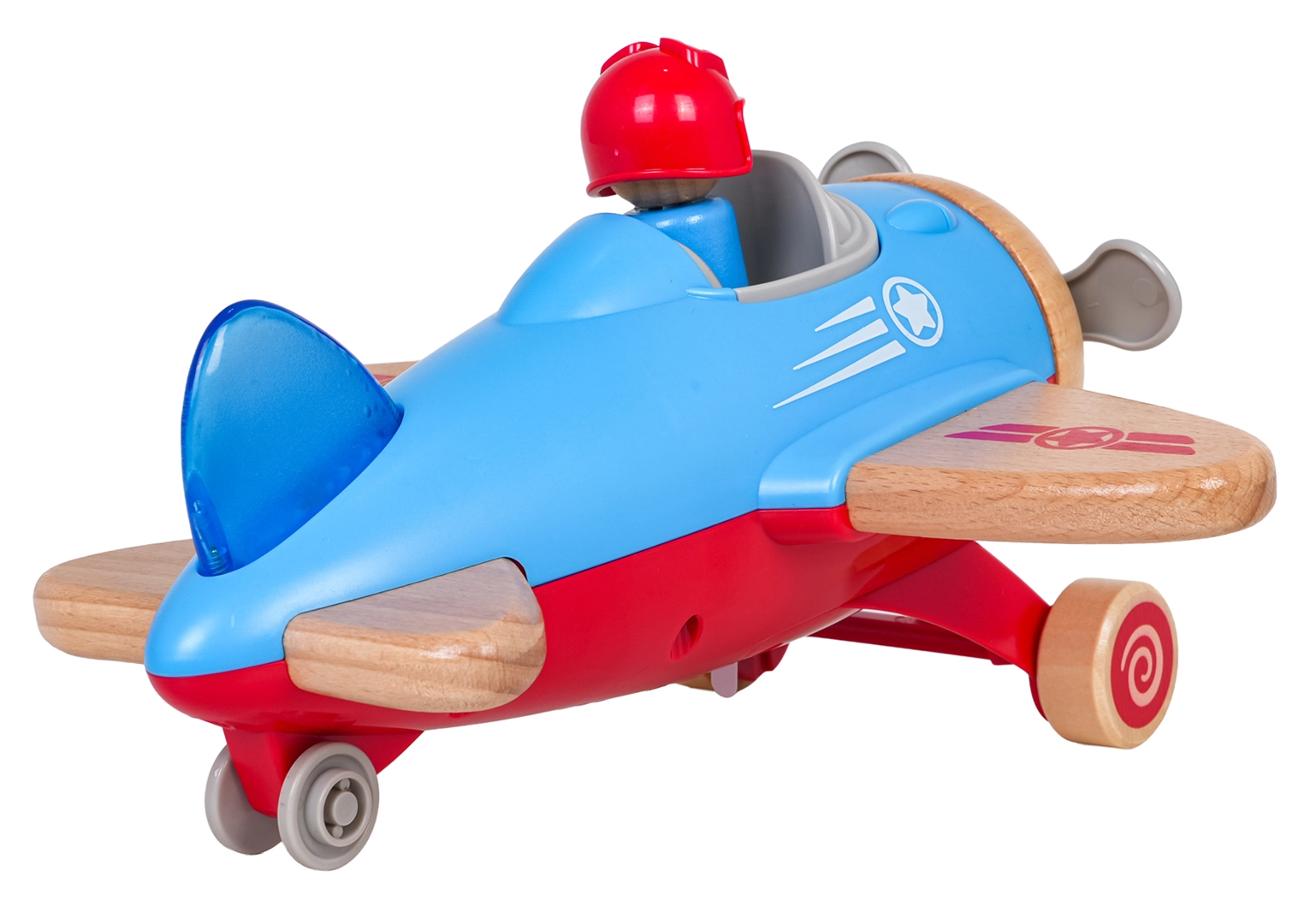 Dit kleurrijke vliegtuig met een schattige piloot stimuleert de fantasie en de ontwikkeling van de fijne motoriek. Bij het indrukken van het pilootfiguurtje licht de achtervleugel op en klinken melodieën en realistische startgeluiden. De robuuste combinatie van hout en plastic zorgt voor een lange levensduur en een prettig gevoel.