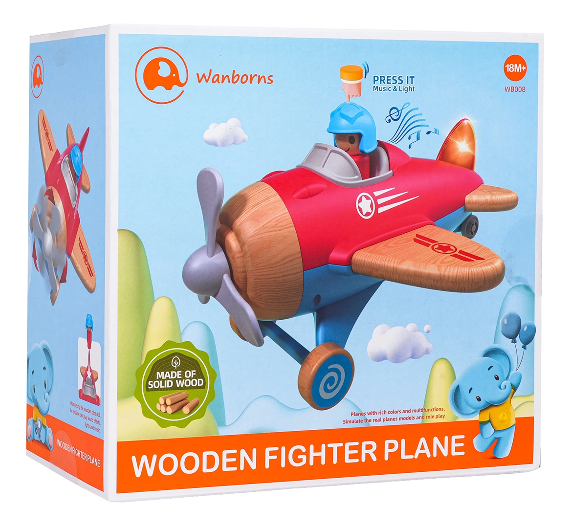 Interactief houten vliegtuig voor kinderen vanaf 18 maanden combineert hoogwaardig hout en duurzaam plastic, en biedt lichteffecten, melodieën en startgeluiden. Het heeft een draaiende propeller, vrij draaiende wielen om te duwen en is veilig zonder scherpe randen. Batterijen zijn inbegrepen.