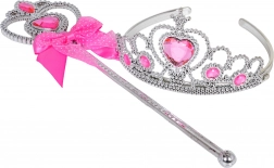 Een zilveren kroon met roze steentjes en een bijpassende toverstok geven het kostuum koninklijke glans en stimuleren de verbeelding bij rollenspel.
