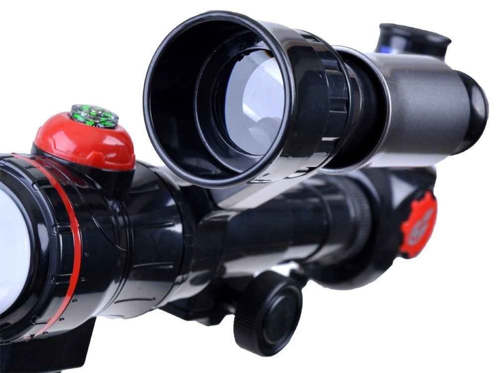 - telescoop, 3× oculair, diagonaal prisma, mini-kompas, statief