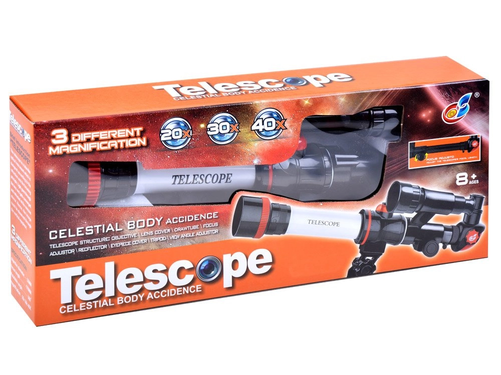 Ontdek de nachtelijke hemel met een lichte en eenvoudig te bedienen kindertelescoop op statief. Hij biedt verwisselbare oculairvergrotingen van 20×, 30× en 40×, hoog beeldcontrast en goede kleurweergave. Dankzij het diagonale prisma is het observeren comfortabel, het compacte statief zorgt voor stabiliteit en de gesloten buis beschermt de optiek tegen stof. Een geweldige keuze voor de eerste stappen van jonge astronomen en voor aardse observaties.
