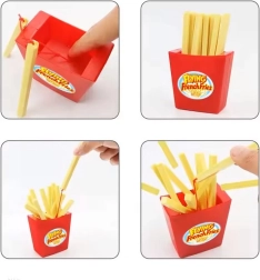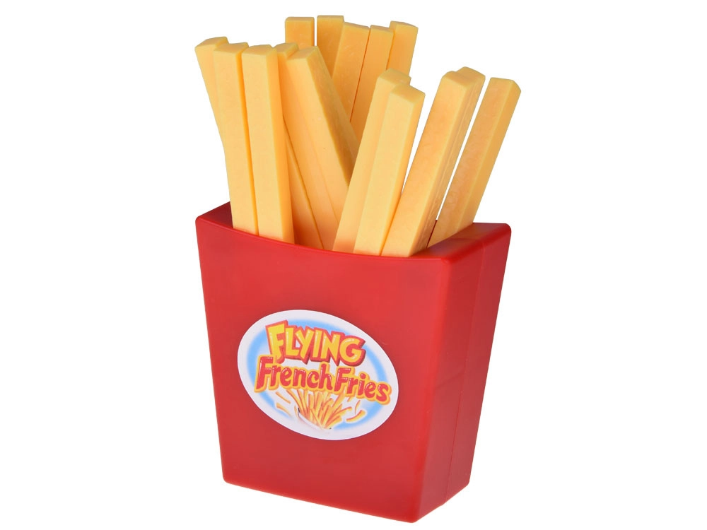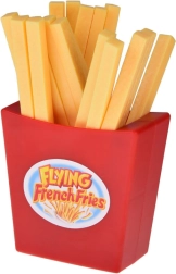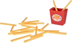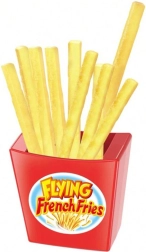 Het spel Vliegende frietjes is een uitstekende keuze voor familieavonden, verjaardagen en kinderfeestjes. Druk het mechanisme in de stijlvolle rode beker in, vul hem met frietjes en spelers trekken om de beurt één frietje. Wie het afschieten van de frietjes veroorzaakt, verliest de ronde – eenvoudig, spannend en gegarandeerd leuk.
