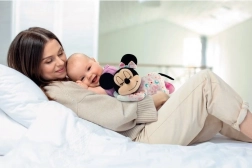 De superzachte pluchen Minnie van CLEMENTONI BABY helpt kinderen tot rust te komen en makkelijker in slaap te vallen dankzij de combinatie van chromotherapie en zachte melodieën. Ze biedt witte ruis, klassieke muziek, kalmerende melodieën en hartslag, en schijnt tegelijk met gekleurde lichtjes met variabele intensiteit. Het schattige design met een pyjama met nachtmotief maakt haar tot een onweerstaanbare knuffel voor het slapengaan.