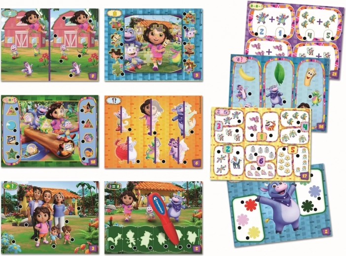 Interactief spel met 200 quizzen DORA de ontdekkingsreiziger. Pen met licht en geluid, ontwikkeling van logica en concentratie. AAA-batterijen inbegrepen. Perfect voor kleuters.