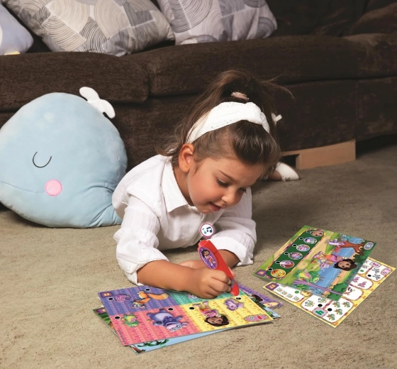 De speelset met 200 quizzen is ideaal voor kleuters die op een speelse manier de wereld willen ontdekken. De interactieve pen geeft directe feedback – bij een juist antwoord licht hij op en maakt hij een geluid, wat kinderen motiveert om door te gaan en zelfstandig te leren.