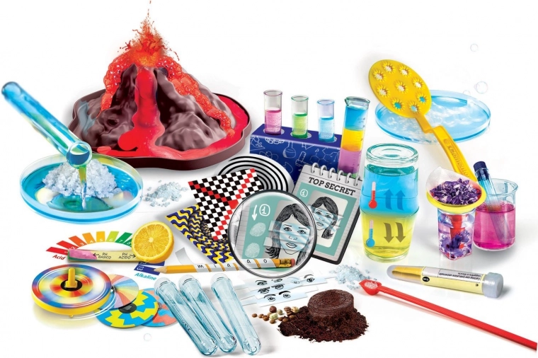 Kinderen verkennen veilig de basis van de chemie – van het mengen van kleurrijke oplossingen tot de spectaculaire “uitbarsting” van een vulkaanmodel. Transparante bakjes en reageerbuizen maken het observeren van de reacties eenvoudig.