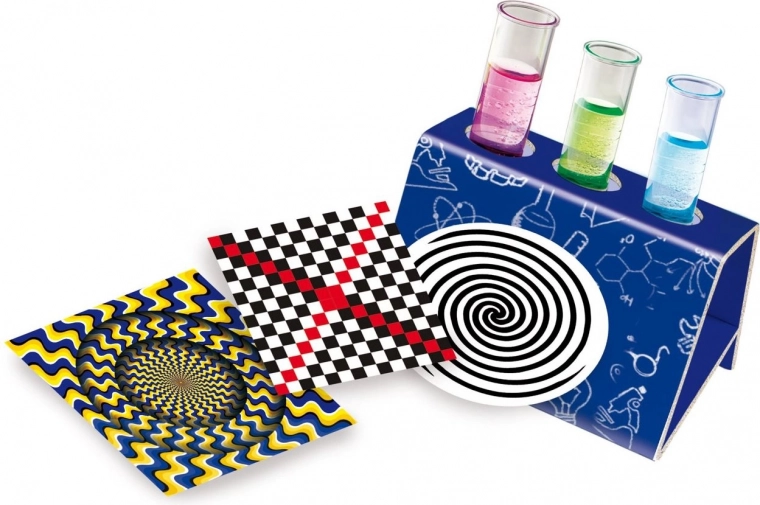 De set bevat kaarten met optische illusies en eenvoudige experimenten die kinderen laten zien hoe het menselijk oog licht, kleuren en patronen waarneemt.