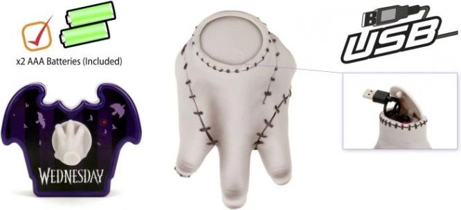 Breng je verzameling horror-rekwisieten tot leven met de iconische hand Thing uit Wednesday. Deze geanimeerde, op afstand bestuurbare kruipende hand beweegt realistisch vooruit, achteruit en draait naar links, werkt op 2,4 GHz voor een stabiel bereik en is eenvoudig op te laden via USB. Ideaal als themadecoratie, cadeau voor fans of een leuke party-rekwisiet.