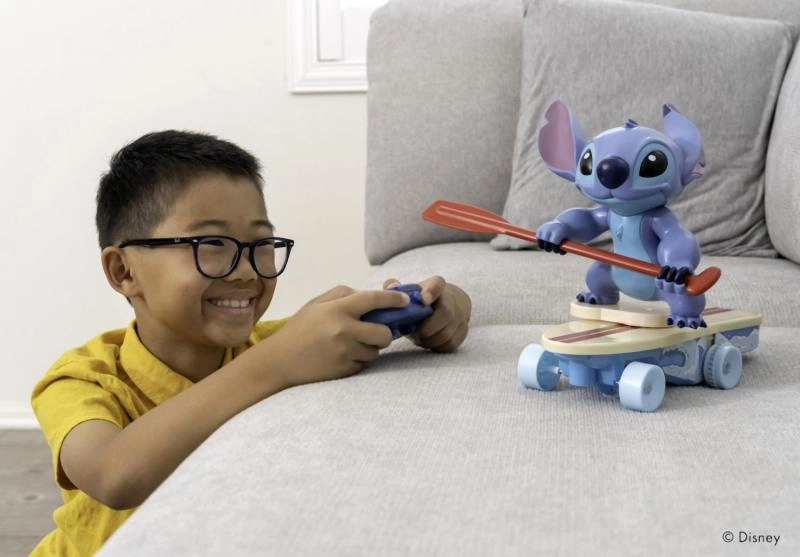 De RC surfer STITCH biedt kinderen actievol rijden en veel fantasie. Bedien hem met de eenvoudige controller en kijk hoe hij over de vloer “surft”, stuurt en na een kleine botsing gewoon doorgaat – na een val richt hij zich namelijk zelf weer op. Dankzij de 2,4 GHz-frequentie is de besturing vloeiend en storingsvrij.