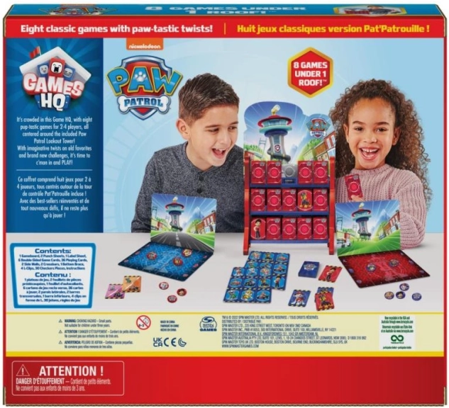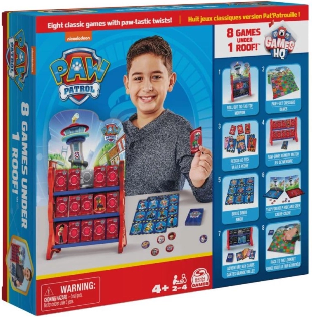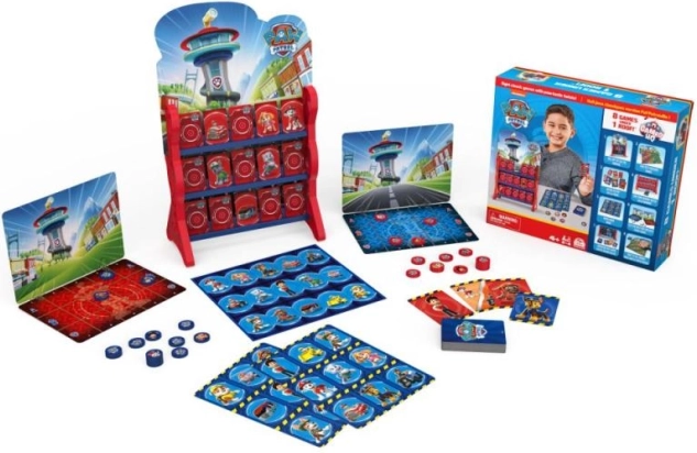Geniet van familieplezier met een set van acht klassieke spellen in de unieke 3D-stijl van het hoofdkwartier van PAW PATROL. Je vindt hier bingo, boter-kaas-en-eieren, dammen en andere eenvoudige spellen voor 2–4 spelers vanaf 4 jaar, die logica, concentratie en teamwork ontwikkelen.