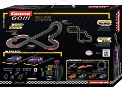 De lay-out met verticale wand, kruising en snelle bochten zorgt voor dynamische gevechten wiel aan wiel. Bouw de aanbevolen baan of creëer je eigen varianten.