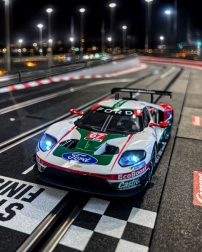Racewagenmodel Ford GT voor CARRERA Digital 124 racebanen in schaal 1:24 levert topprestaties en een realistische ervaring. Biedt functionerende voor- en achterlichten, dubbele sleepcontacten voor betrouwbare stroomafname en een magneet voor betere grip in bochten. In de verpakking zitten reserveborstels, een geleidingsslede en overige accessoires.