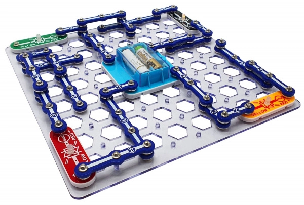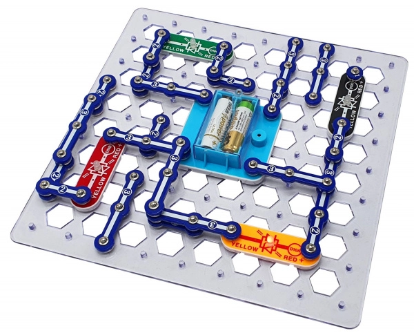 Kleurrijk onderscheiden onderdelen en een overzichtelijk raster maken het intuïtief om elektrische paden te leggen – ideaal voor kinderen vanaf 8 jaar en volwassenen.