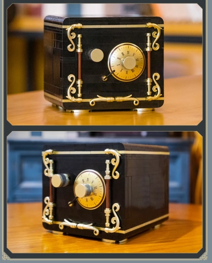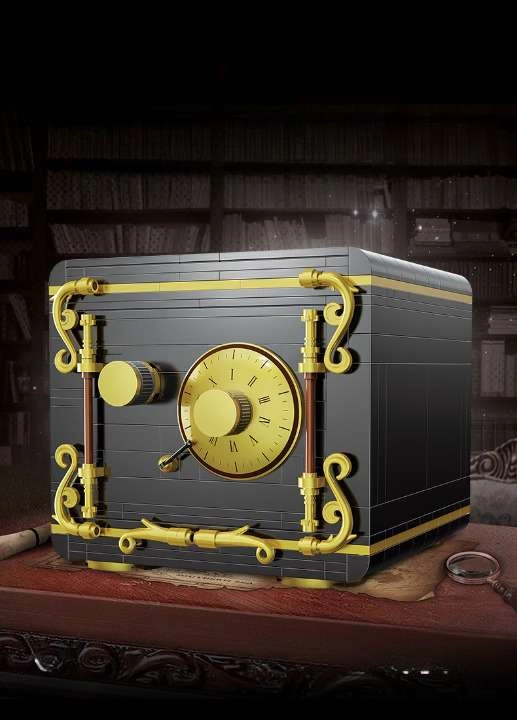 De safe is uitgevoerd in zwart met gouden accenten; de hoofdknop met Romeinse cijfers maakt het instellen van de code eenvoudig en het authentieke klikgeluid tijdens het draaien verhoogt de realiteitsbeleving. De bouwset stimuleert oog-handcoördinatie, creativiteit en geduld, en dankzij de compatibiliteit van de onderdelen breid je hem gemakkelijk uit met andere modellen.