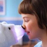 Kleuren van het licht staan voor emoties: blauw betekent koelte en geluk, groen slaperigheid/slaap en rood te veel warmte – tijd om de magische ijsblok te gebruiken. Wrijf er zacht mee over het hoofd van de beer en kijk hoe het neusje magisch oplicht en de beer “afkoelt”.