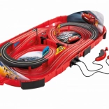 - 1× auto Bliksem McQueen, 1× auto Dinoco Cruz, rechte stukken, bochten, steunen, vangrails, draagkoffer, voedingsdeel, 2× regelaar, handleiding