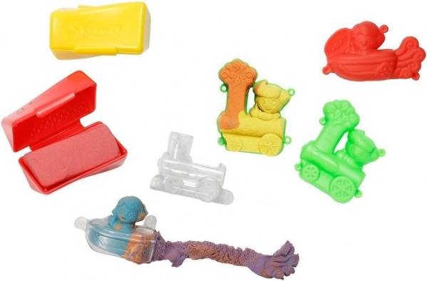 In de verpakking vind je twee kleuren massa, voertuigvormen en transparante capsules voor het maken en tentoonstellen van actiefiguren. De set is ideaal voor thuis en creatieve workshops – ondersteunt verbeelding, concentratie en motorische ontwikkeling.