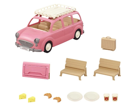 Ontdek de magie van gezamenlijke uitstapjes met de Sylvanian Families familiepicknickbusje – een ruime, roze wagen voor tot wel 8 figuurtjes. Voorzien van inklapbare achterstoelen, een afneembare kofferbakdeksel als tafel, een praktische dakdrager met picknickmand en zelfs een speelveld voor hinkelspel. Perfect voor realistisch rollenspel en gezellige picknicks in de natuur.