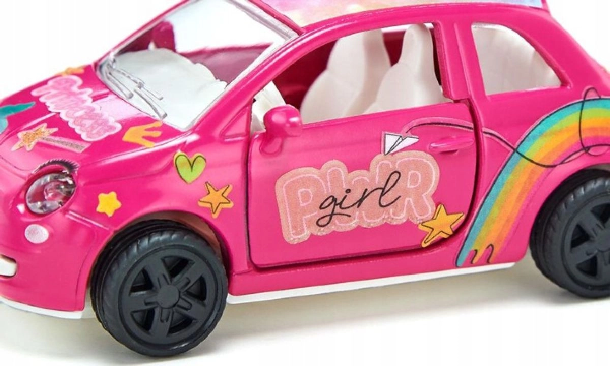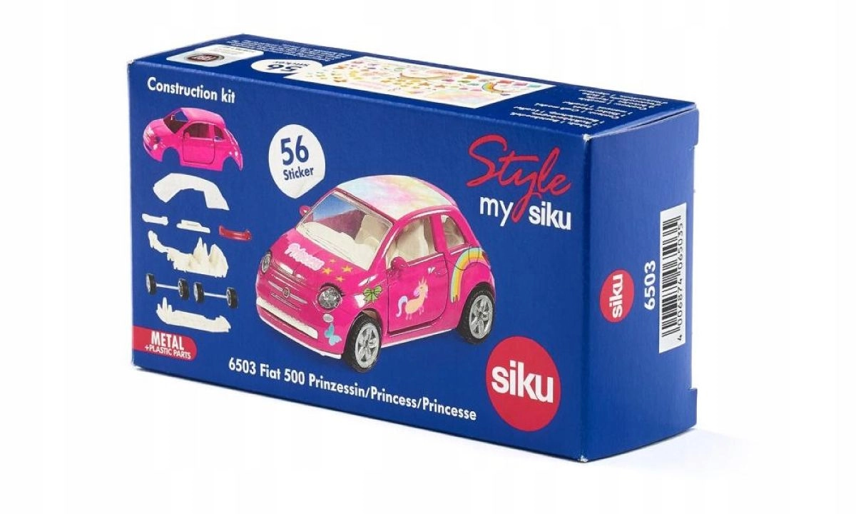 De roze FIAT 500 in de Princess-editie van Siku is een geweldige keuze voor kleine ontwerpers en alle autoliefhebbers. Het model komt als een leuk bouwpakket: kinderen zetten eerst de auto in elkaar en versieren hem daarna met de meegeleverde stickers met regenbogen, sterretjes en eenhoorns. Dankzij de combinatie van metaal en kunststof is het model stevig, duurzaam en klaar voor dagelijks speelplezier.