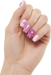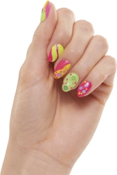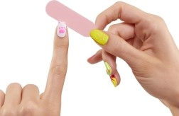 Maak perfecte nagels: kies tips, vorm bij met de vijl, plak ze op, breng nagellak aan en maak af met glitter of stickers. Alles ruim je op in de stijlvolle opbergruimte – de mini koelkast en cafépult.
