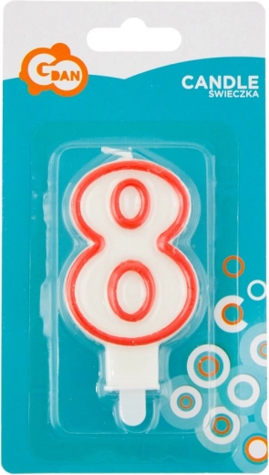 Deze witte kaars met opvallende rode omlijning is de ideale decoratie voor verjaardagstaarten en andere feestelijke gelegenheden. Ze accentueert de leeftijd en geeft het geheel een elegante, frisse look.
