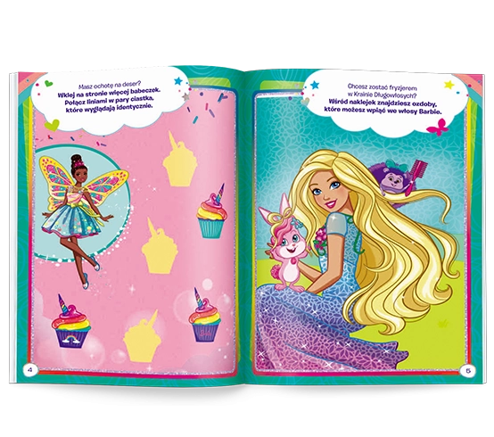 Betreed de sprookjeswereld van BARBIE Dreamtopia, waar elke pagina een nieuw avontuur brengt. Kinderen kunnen hun eigen verhalen creëren, scènes versieren en hun verbeelding ontwikkelen met behulp van twee vellen stickers met glinsterend effect. De opdrachten zijn ontworpen om aan te sluiten bij de vaardigheden van kinderen van 4–7 jaar – leuk, overzichtelijk en motiverend.