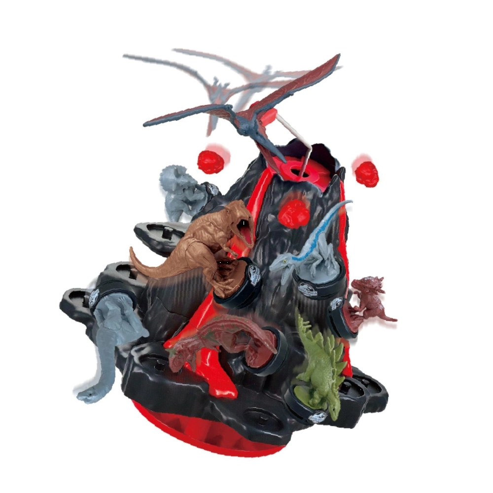 vulkaanbasis, 8 verzamelbare dinobeeldjes (inclusief Pteranodon), spinner