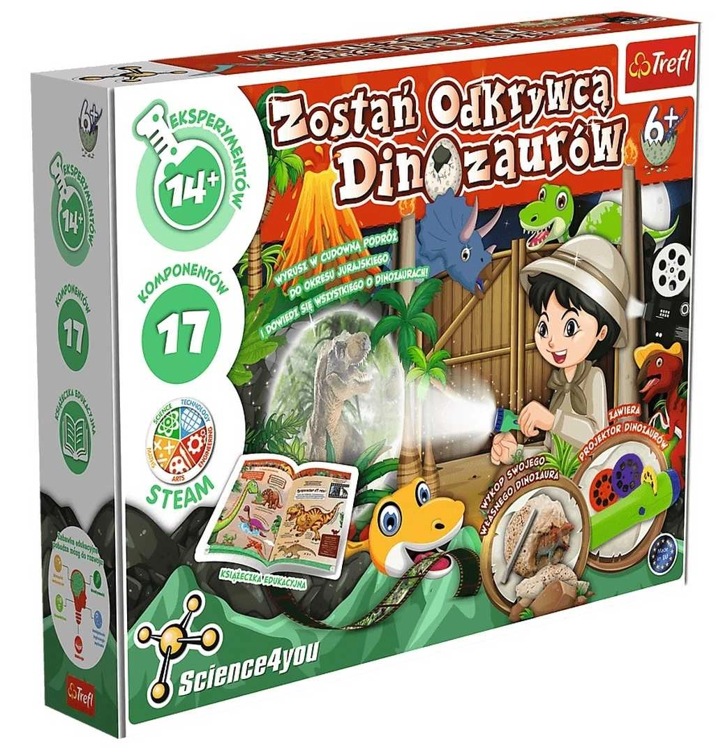 Kinderen ontwikkelen tijdens de experimenten hun motorische vaardigheden, creativiteit, geduld en probleemoplossend vermogen. Dankzij de projector met 24 dinosaurusdia’s wordt leren nog boeiender — projecteer favoriete soorten op de muur en creëer thuis je eigen dinosauruslaboratorium.