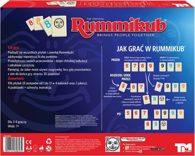 Inhoud van de doos: 106 stenen (8 sets met nummers van 1 tot en met 13 in vier kleuren en 2 jokers), 4 rekjes en uitgebreide spelregels. Maak je klaar voor spannende duels waarin slimme tactiek en goed timen het verschil maken.
