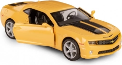 Gedetailleerd uitgewerkt model van de Chevrolet Camaro op schaal 1:32, met een metalen carrosserie en kunststof details. Dankzij de openende deuren en het pull-backmechanisme biedt het zowel een realistische uitstraling als speelplezier. De officiële licentie garandeert nauwkeurige details en hoogwaardige afwerking; de gele carrosserie geeft het model een sportieve look.