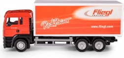 De gedetailleerde MAN TGS-cabine en FLIEGL-oplegger met authentieke bedrukking en meerdere assen spreken zowel kinderen als verzamelaars aan.