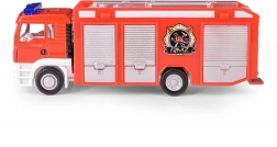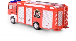 Realistische proporties, bedrukking met brandweerembleem en blauwe zwaailichten versterken de speelbeleving, terwijl de hoogwaardige afwerking voldoet aan Europese veiligheidsnormen voor kinderen vanaf 3 jaar.