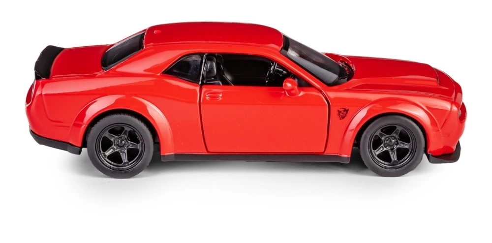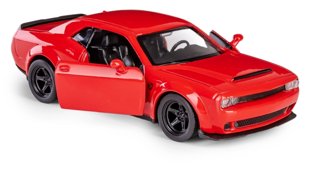 Geniet van een realistische rit met het gedetailleerde automodel van de Dodge Challenger SRT Demon op schaal 1:32. De combinatie van metalen en kunststof onderdelen zorgt voor duurzaamheid, openende deuren onthullen het zorgvuldig uitgewerkte interieur en het pull-backmechanisme brengt plezier tijdens het naar voren rijden. Rubberen banden verbeteren de grip en de officiële licentie garandeert getrouwe details van deze iconische muscle car.