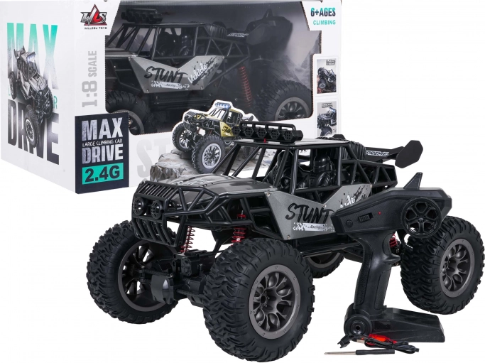 Geniet van actievolle offroad-ritten met de RC-crawler in schaal 1:8. De metalen carrosserie en veerophanging zorgen voor hoge duurzaamheid, terwijl grote, antislip banden met diep profiel uitstekende tractie bieden op grind, gras en zand. De 2,4 GHz-controller biedt vloeiende besturing zonder storingen en een bereik tot 50 meter.