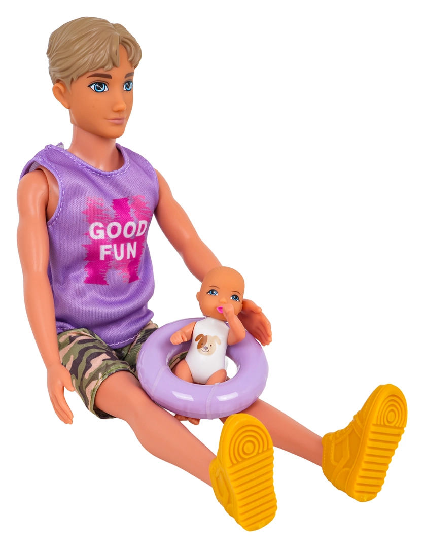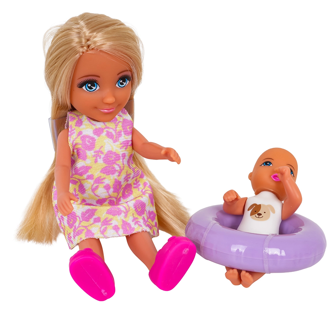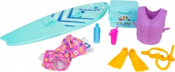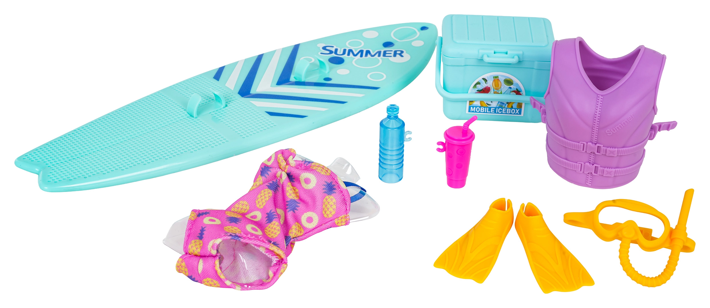 Dankzij de surfplank, zwemvliezen, het reddingsvest en de opblaasbare zwemband kunnen kinderen talloze verhalen bedenken, van surfen tot veilig zwemmen. De koelbox voor drankjes en bekertjes maken elk strandavontuur compleet. De poppen hebben beweegbare armen, benen en hoofd en kunnen gemakkelijk zitten of staan voor realistische scènes.