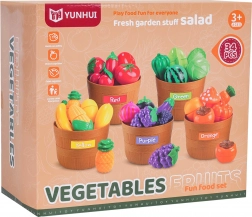 Ontdek een leuke didactische set fruit en groenten voor kinderen vanaf 3 jaar. De set bevat 34 onderdelen, waaronder fruit en groenten met klittenband om “te snijden”, 5 mandjes om op kleur te sorteren en 2 snijplankjes met messen. Hoogwaardige kunststof in levendige kleuren stimuleert de fijne motoriek, leert kleuren en ondersteunt creatief rollenspel in de keuken.