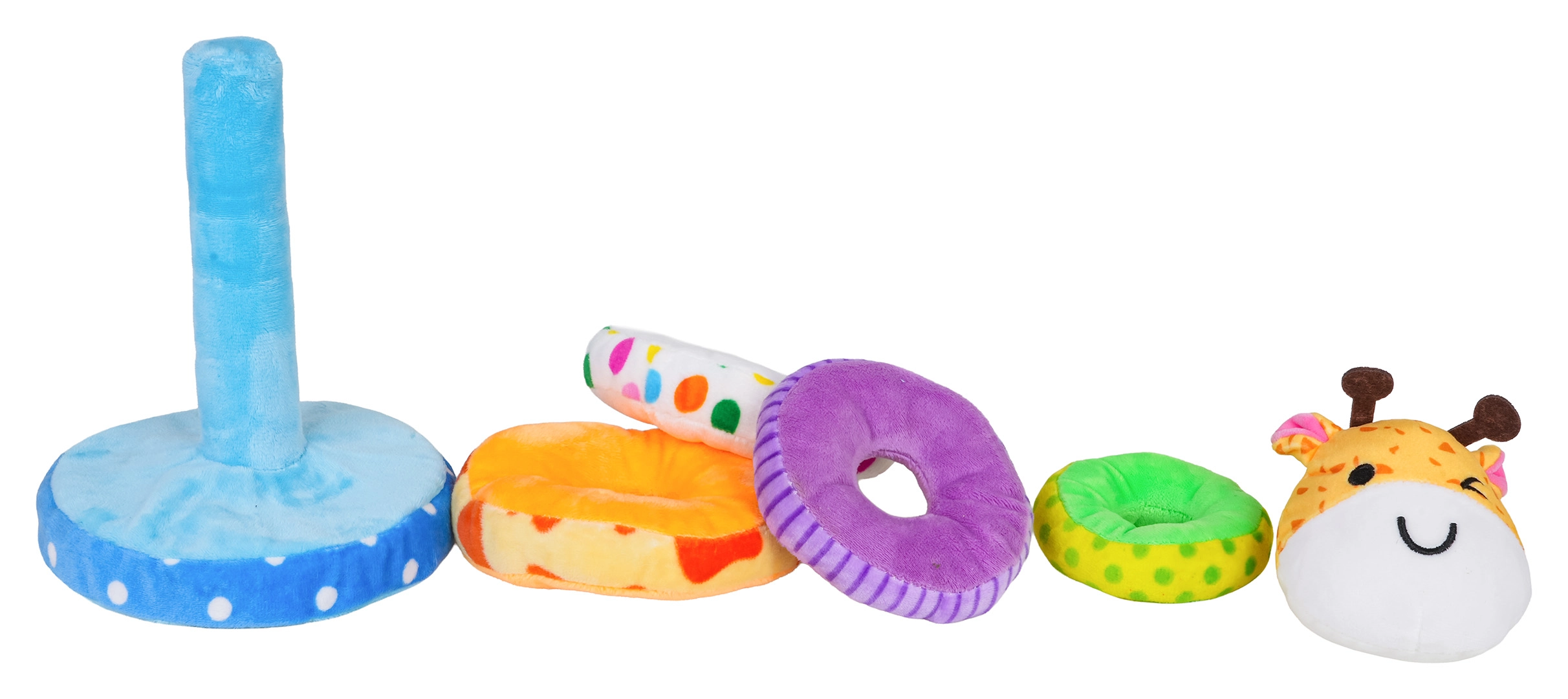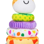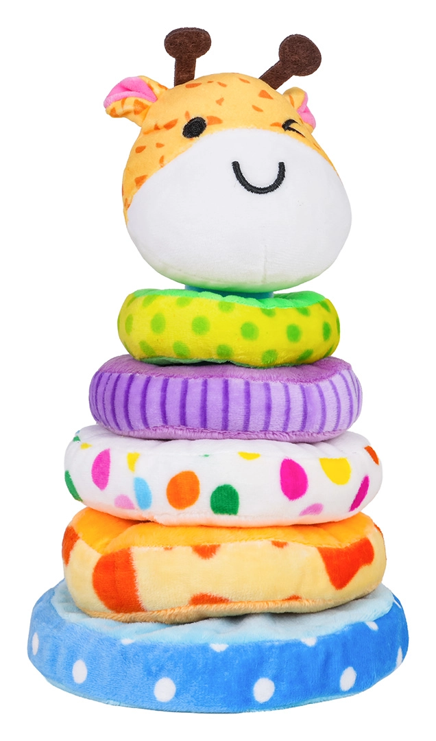 Een schattige zachte piramide in de vorm van een giraf stimuleert de fijne motoriek, de oog-handcoördinatie en het sorteren op grootte. Gekleurde, zachte ringen van pluche nodigen uit tot aanraken en veilig spelen. In het hoofd van de giraf zit een pieper verstopt die bij indrukken geluid maakt en de zintuiglijke waarneming prikkelt. Ideaal speelgoed voor kinderen vanaf 18 maanden.