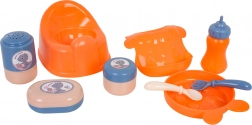 - pop, reisbedje, buggy, kinderstoel, draagzak, potje, bordje, lepeltje, vorkje, fles, crèmedoosje, poederdoosje, zeepbakje, slab