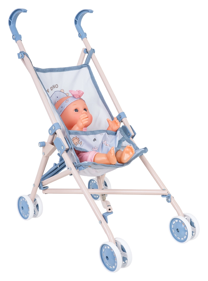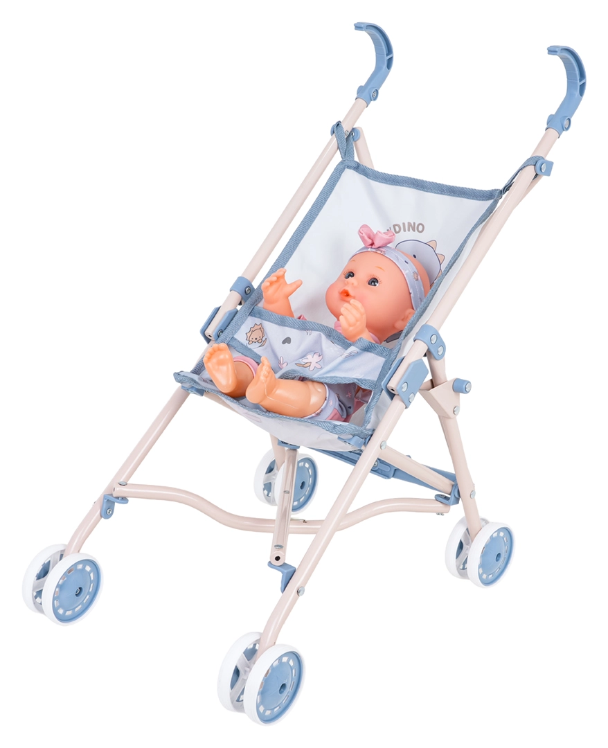 Deze mega set BABY DINO biedt kinderen tal van mogelijkheden voor creatief en realistisch rollenspel in de verzorging. De pop heeft beweeglijke armen en benen, draagt kleurrijke kruippakjes met haarband, kan uit het flesje drinken en op het potje “plassen”. Met de lichte buggy, het reisbedje en de kinderstoel kunnen kinderen de pop voeden, rondrijden en in slaap wiegen.