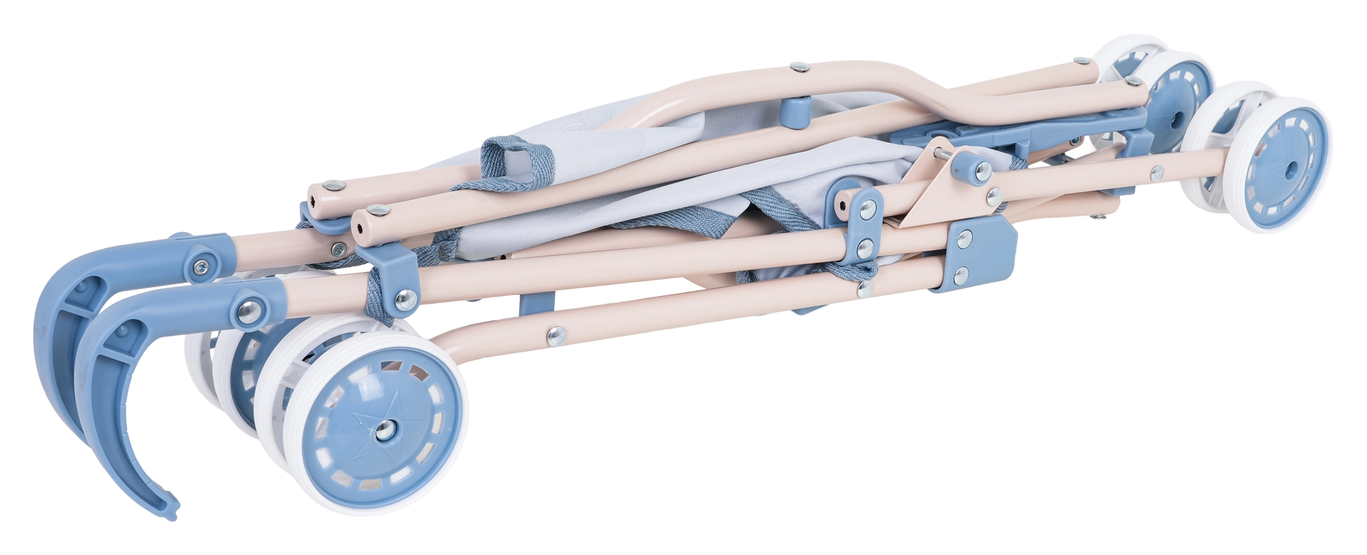 Lichte buggy met dubbele wielen en veiligheidsgordel, eenvoudig op te vouwen om ruimte te besparen. Geweldig voor spelen thuis en onderweg.