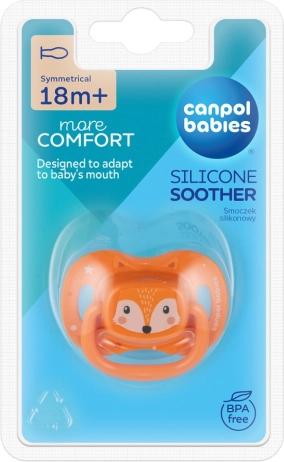 De CUTE ANIMALS 18m+ speen in oranje combineert comfort en veiligheid voor dagelijks gebruik. De symmetrische vorm past zich natuurlijk aan de mond van het kind aan, ongeacht de positie, terwijl het uiteinde van hoogwaardige siliconen zacht, duurzaam en gemakkelijk te accepteren is. Het geventileerde, ergonomisch gevormde schild minimaliseert drukplekken en ondersteunt vrije neusademhaling.