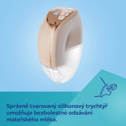 Het afneembare reservoir van 120 ml heeft een praktische opening voor het gemakkelijk overschenken van melk en dankzij het volledige openen in twee delen is het eenvoudig te wassen en te desinfecteren. De goed gevormde siliconen borstschildtrechter is zacht voor de tepels en ondersteunt een gelijkmatige melkstroom. In de verpakking vind je 4 maten inzetstukken (17, 19, 21, 24 mm); er is ook een optionele trechter van 27 mm (apart verkrijgbaar).