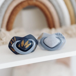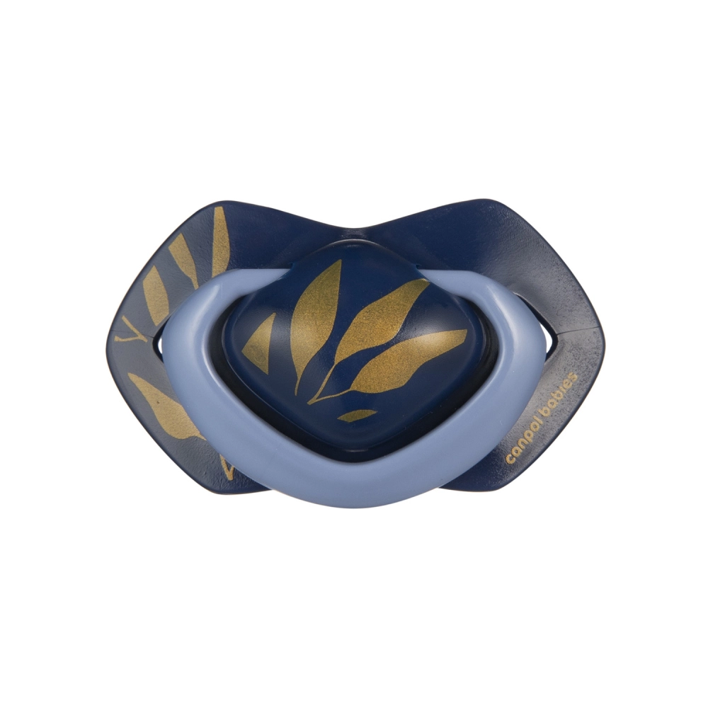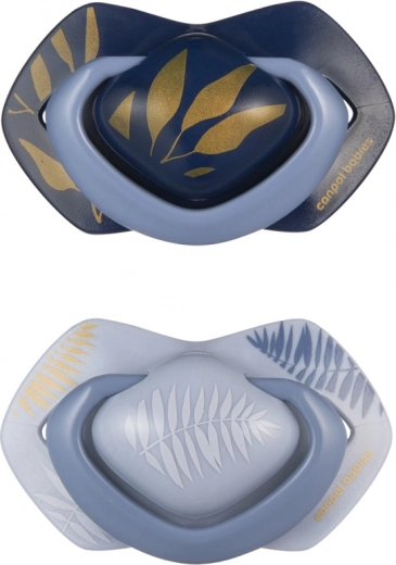 De ultralichte fopspenen CANPOL BABIES Light Touch Gold voor kinderen vanaf 18 maanden bieden een symmetrische, orthodontische vorm, een extra zachte siliconen speen en een geventileerd schildje voor minder drukplekken en gezonde ademhaling. Ze zijn BPA-vrij, vormvast en worden geleverd met een praktisch etui voor snelle desinfectie in de magnetron.