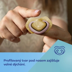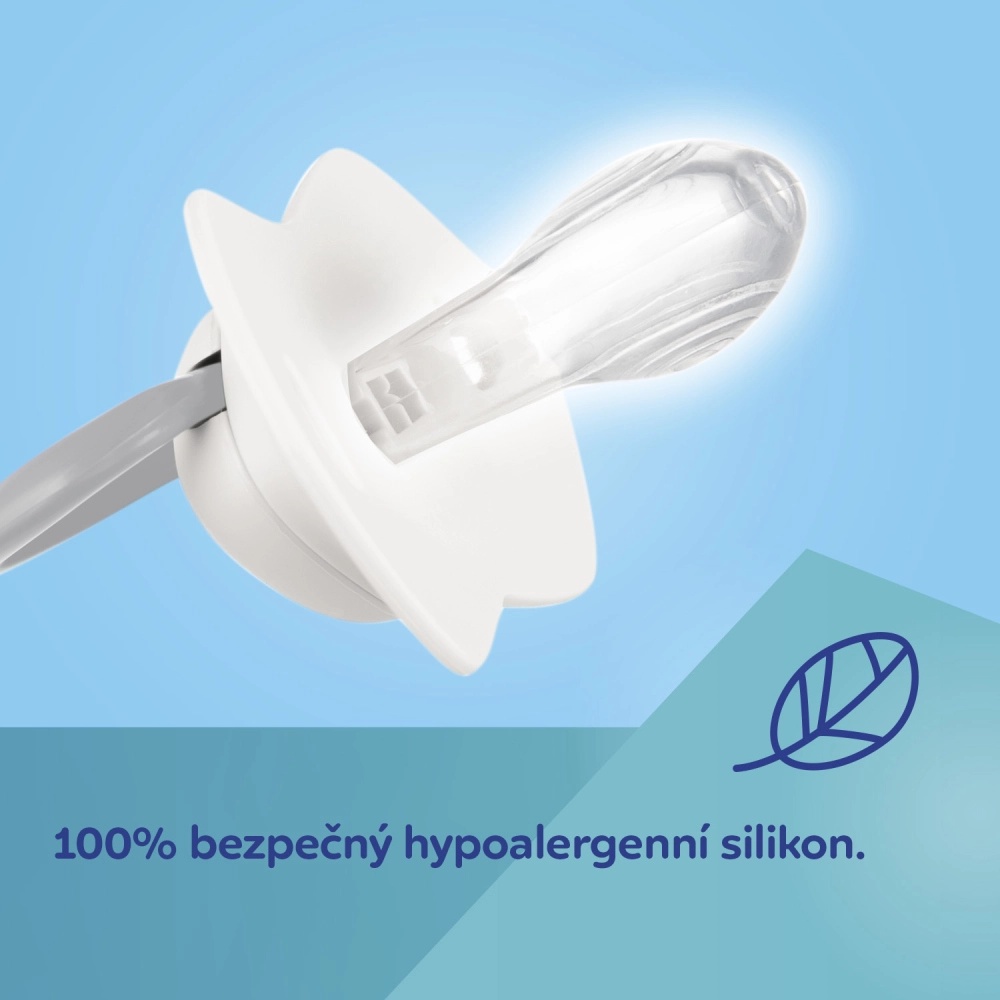 De symmetrische speen past zich natuurlijk aan in de mond, ongeacht de positie, ondersteunt de juiste ontwikkeling van de mondholte en zorgt voor comfortabel zuigen.