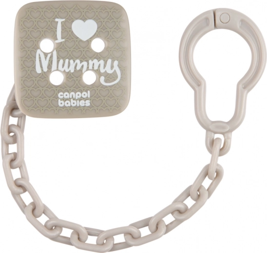 Houd de speen altijd binnen handbereik en schoon. Het Canpol babies speenkoord I LOVE MUMMY biedt een betrouwbare bevestiging met een stevige clip, die je eenvoudig met één hand bedient. Het minimalistische grijze design past bij elke outfit en is dankzij de afgeronde vormen zacht en veilig.