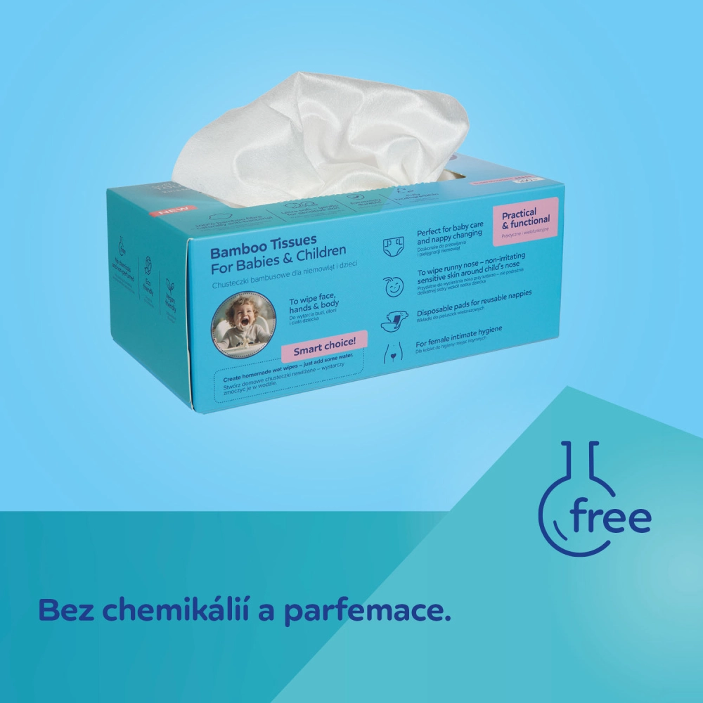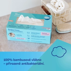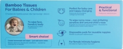 Extra zachte en stevige bamboe doekjes voor baby’s en kinderen. Gemaakt van 100% bamboevezel, dat van nature antibacterieel is, zonder chemicaliën en parfum en milieuvriendelijk. Geschikt vanaf de geboorte, ideaal voor verzorging, verschonen en als zelfgemaakte 2-in-1 vochtige doekjes – voeg simpelweg water toe.