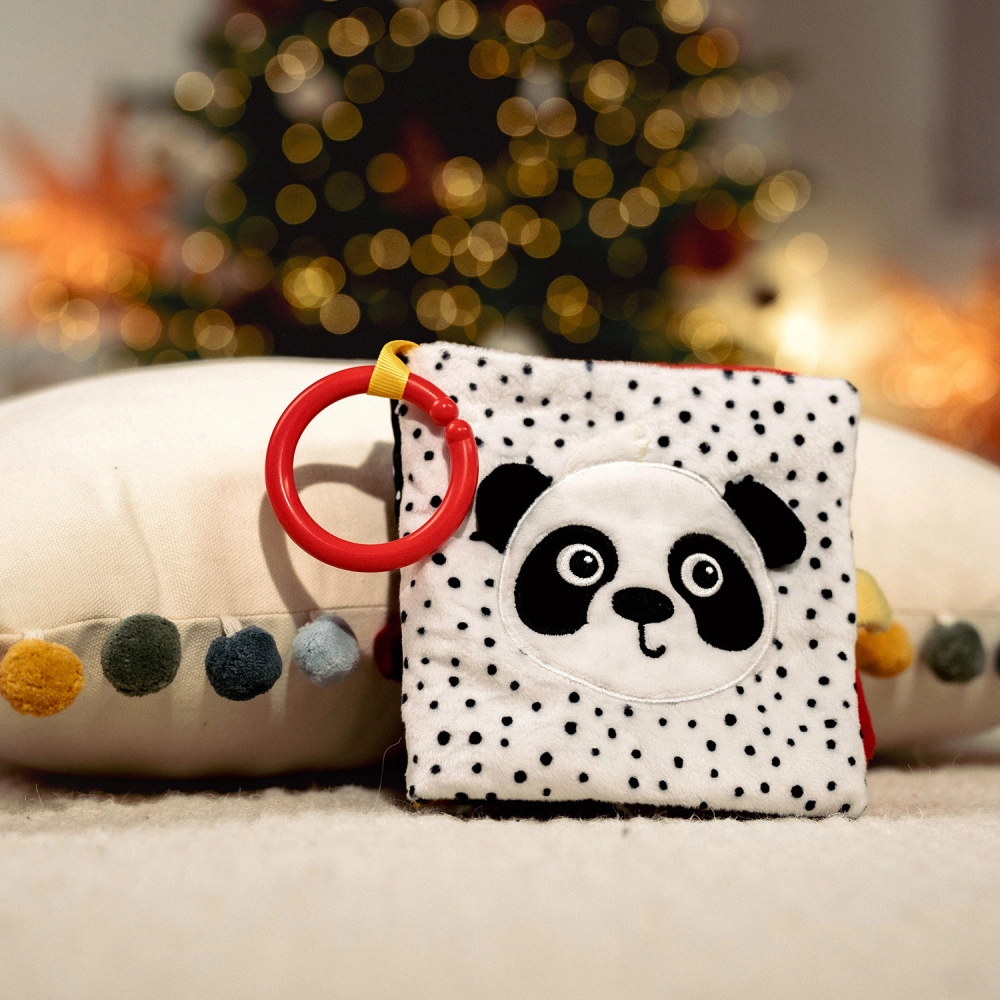 Dit lichte en praktische stoffen boekje stimuleert de natuurlijke ontwikkeling van je kind – het activeert zien, horen en voelen en ondersteunt de oog-handcoördinatie. Het hoge kleurcontrast trekt al pasgeborenen aan, zachte texturen en lintjes nodigen uit om te ontdekken en de bijtring verzacht het tandvlees bij doorkomende tandjes.