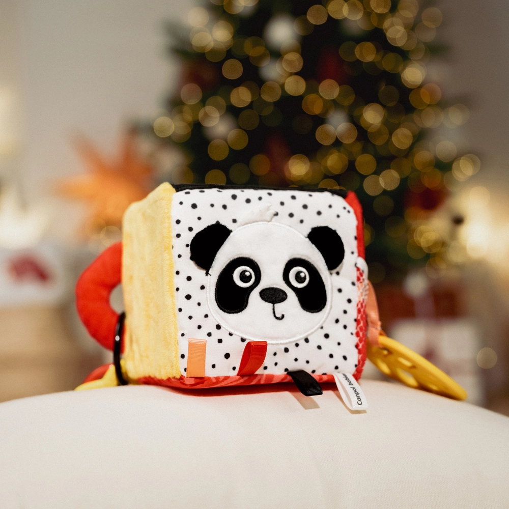 De zachte sensorische kubus Canpol babies BabiesBoo in contrasterende kleuren ondersteunt de ontwikkeling van zicht, gehoor en tast vanaf de eerste dagen. Biedt knisperende elementen, een zacht rammeltje, een veilig spiegeltje en een flexibele bijtring voor verlichting bij doorkomende tandjes. Dankzij de universele ring bevestig je hem eenvoudig aan kinderwagen, ledikant of autostoel.